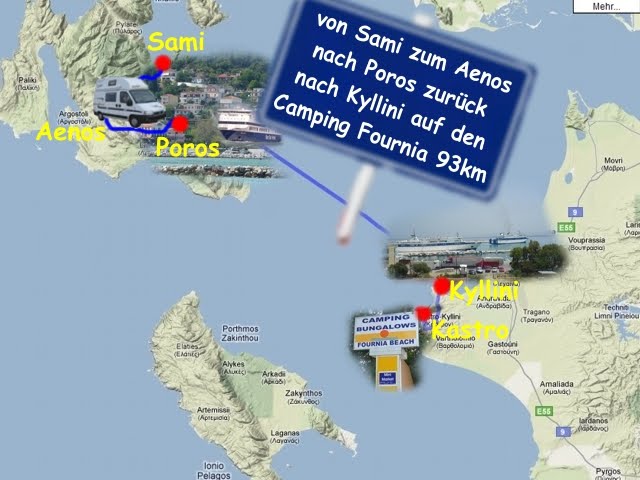 Wir fahren zurück nach Poros. Eigentlich haben wir keine Lust mehr, wieder irgendwo am Strand zu übernachten, denn das Wetter will und will nicht so recht. Wir nehmen die nächste Fähre nach Kyllini und kommen dort in der Dunkelheit an. Auf Camping Fournia Beach (Anfang unserer Griechenland-Reise) überraschen wir Lisbeth und Peter.